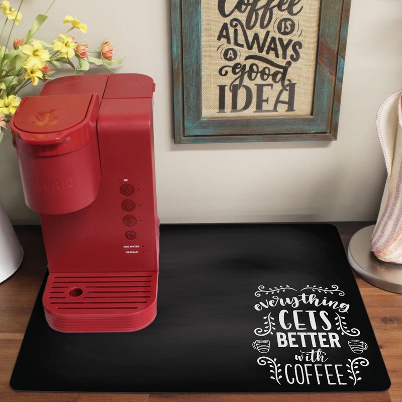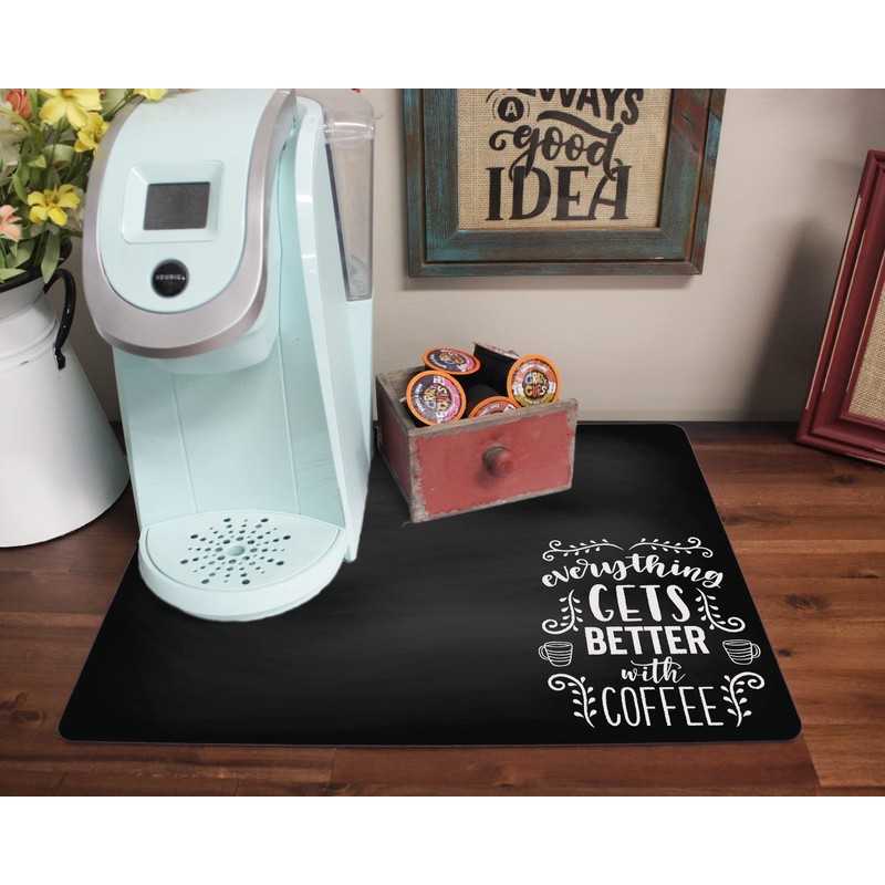 Chalkboard Style Placemat for your Coffee Maker or Espresso Machine - Washable Spill Mat for your Coffee Bar - Made in the USA (Everything Gets Better With Coffee, 15 x 19)