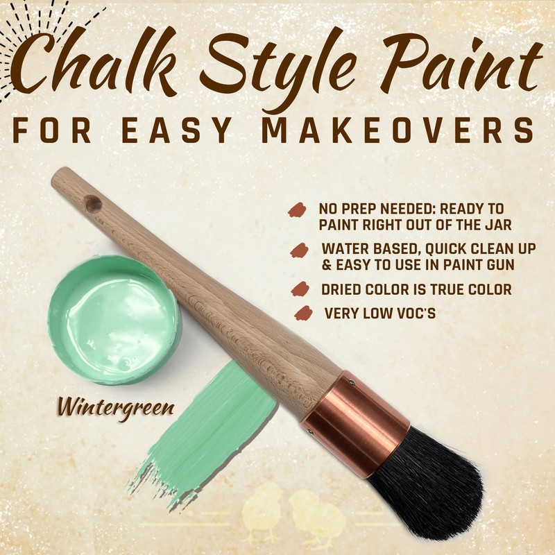 Chalky Chicks 32 Fl Oz Matte Wintergreen (Mint) Chalk Paint for Furniture Without Sanding - No Prep Furniture Paint No Sanding All in One for Crafts, Walls, Cabinet, Metal, Dresser, Farmhouse