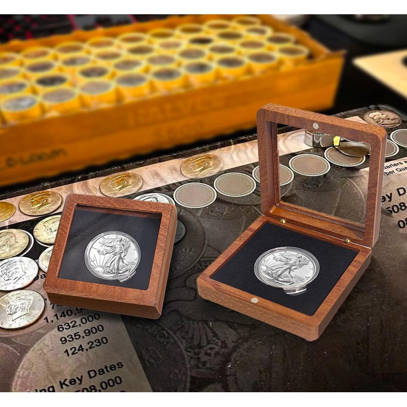- HIGH-QUALITY MATERIALS: The silver dollar coin box is made of high-quality materials to resist temperature and humidity changes and maintain the structure without deformation. View your precious collection in true color with a glassy acrylic lid