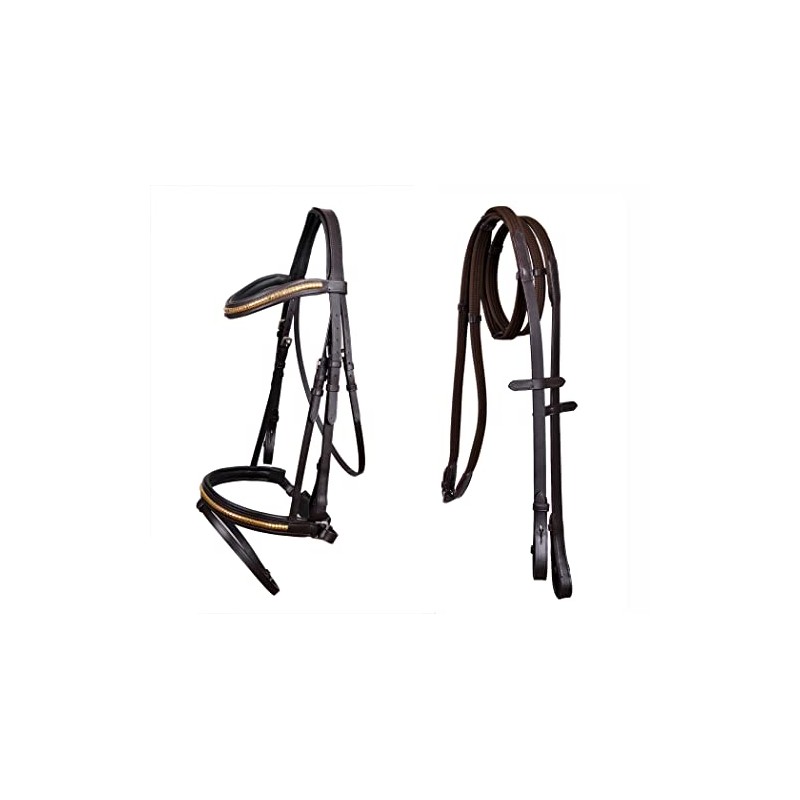 CHALLENGER Horse English All-Purpose Trail Pleasure Padded Leather Crystal Browband Bridle with Buckle Reins 803HI24BR-F