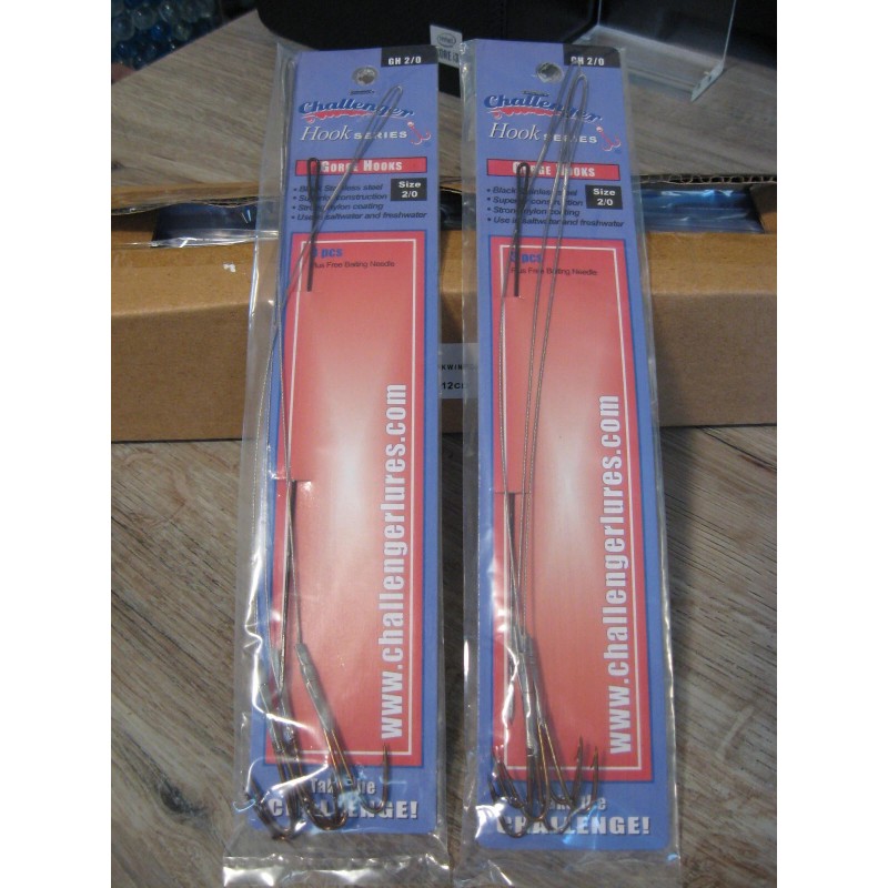 2 Packs Challenger Wire Snelled Fish Hooks # GH-2/0