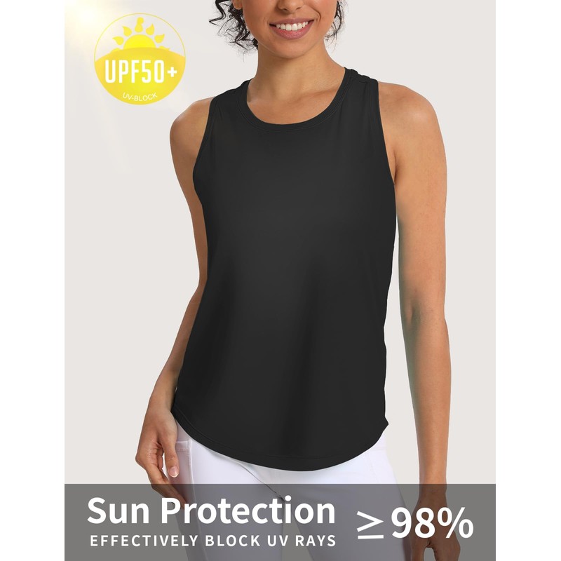 CHALLMOTI Women's Workout Tank Tops Racerback Top Sleeveless Athletic Shirts Running Gym Sports UPF 50+ Black S