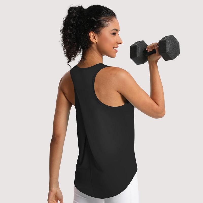 - Sleek Racerback Style** The modern racerback cut combines performance and style, offering full range of motion while pairing perfectly with gym shorts, leggings, or casual jeans.