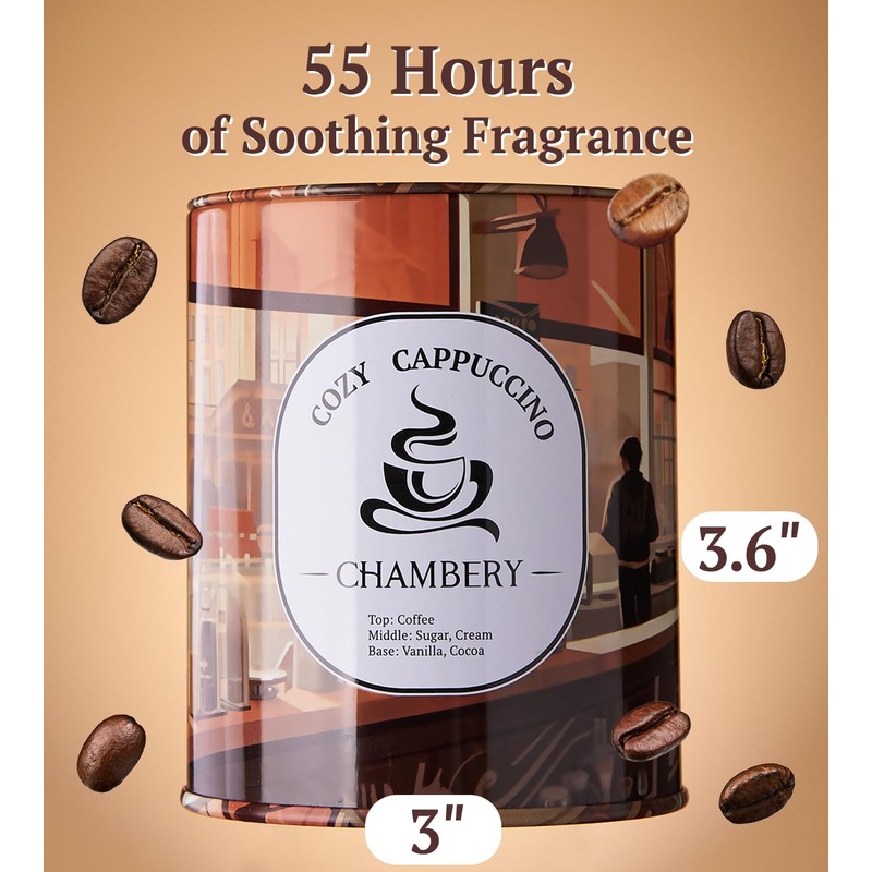CHAMBERY Cappuccino Candle | West Coast Café Ambiance in Premium Tin | Soy Wax with Lead-Free Cotton Wick | 55-Hour Burn | Enveloping Fragrance for Fall & Winter