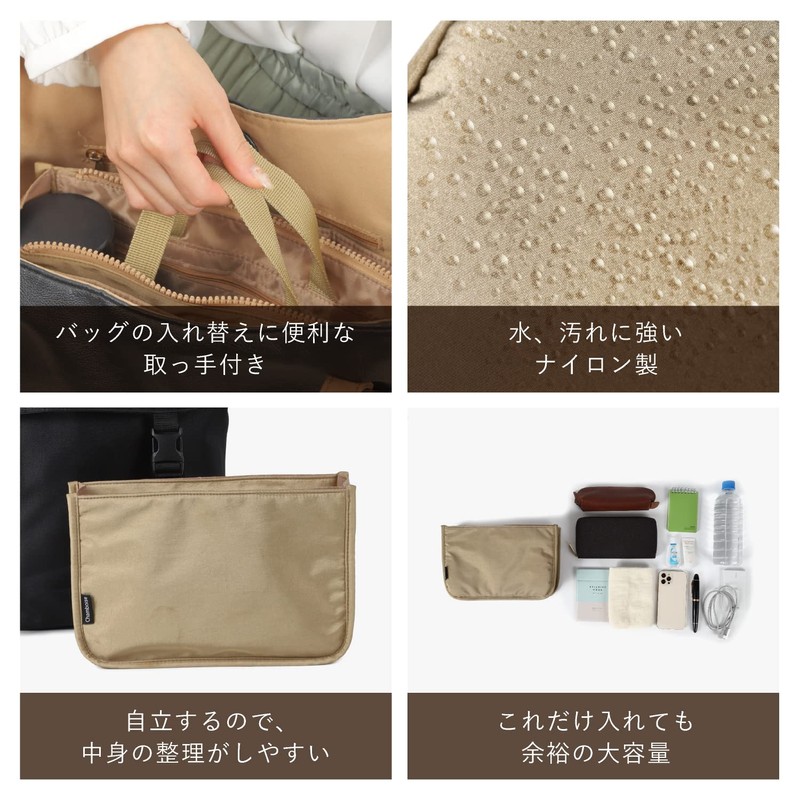 - 【HANDLE】The bag-in-bag has a handle so you can easily move it from bag to another bag. You can tuck it inside when you don't need the handle
