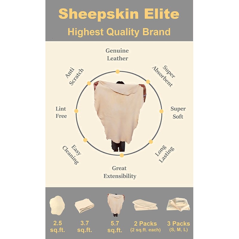 - PRODUCT FEATURES: Unlike synthetic fibres, this natural chamois cloth is made of sheepskin leather, which is scratch free and super soft with great extensibility. This chamois car towels absorption capacities are significantly further enhanced to absorb and retain large amount of water. It provides lint-free shine on your car without leaving water marks.