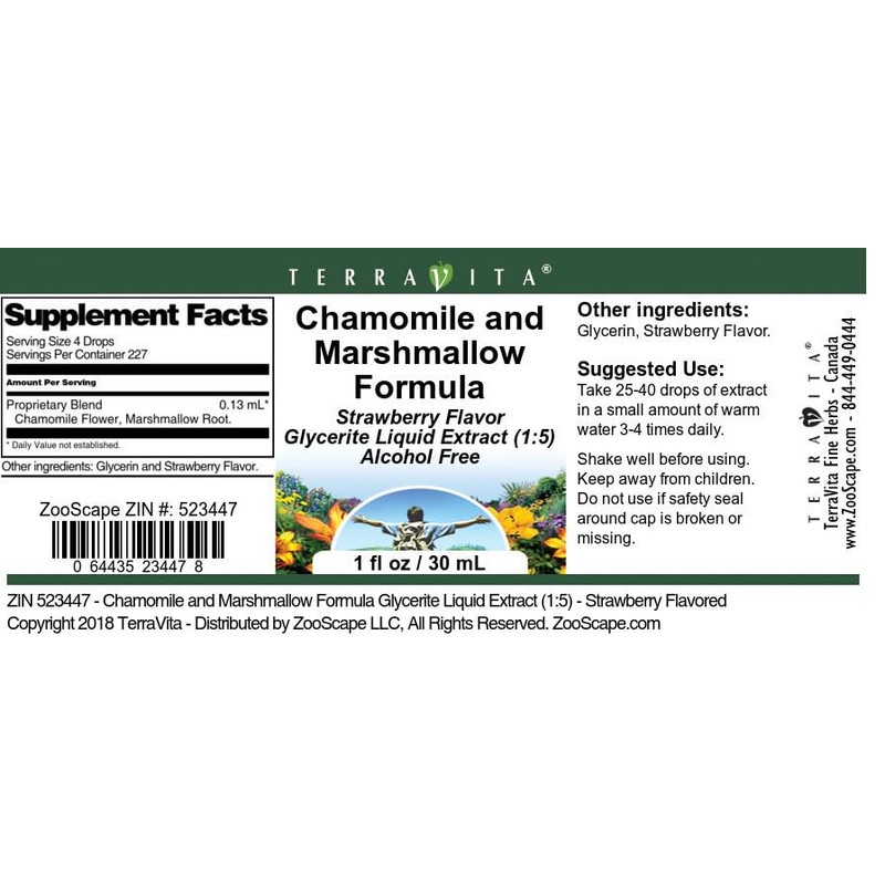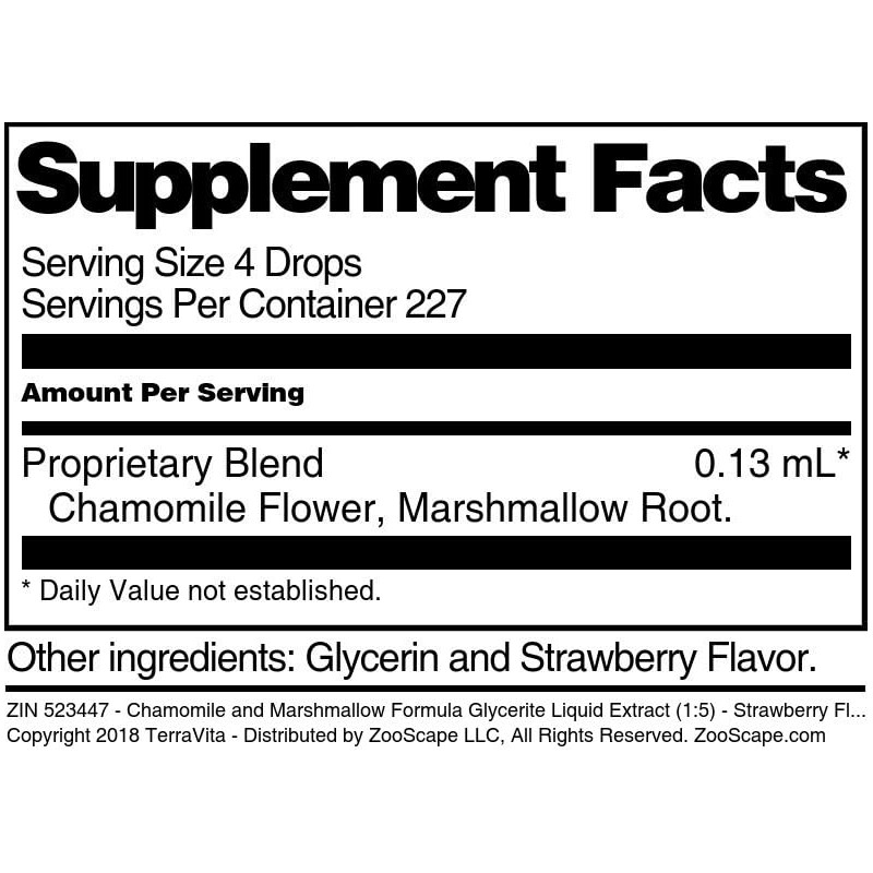 - Chamomile and Marshmallow Formula Glycerite Liquid Extract (1:5) - Strawberry Flavored (1 oz, ZIN: 523447)