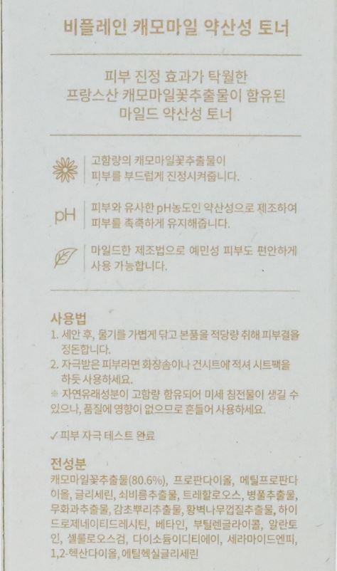 캐모마일 토너 비플레인 약산성 토너 200ml 1개 민감성 저자극 보습 진정 산뜻 촉촉 수분 공급 워터타입