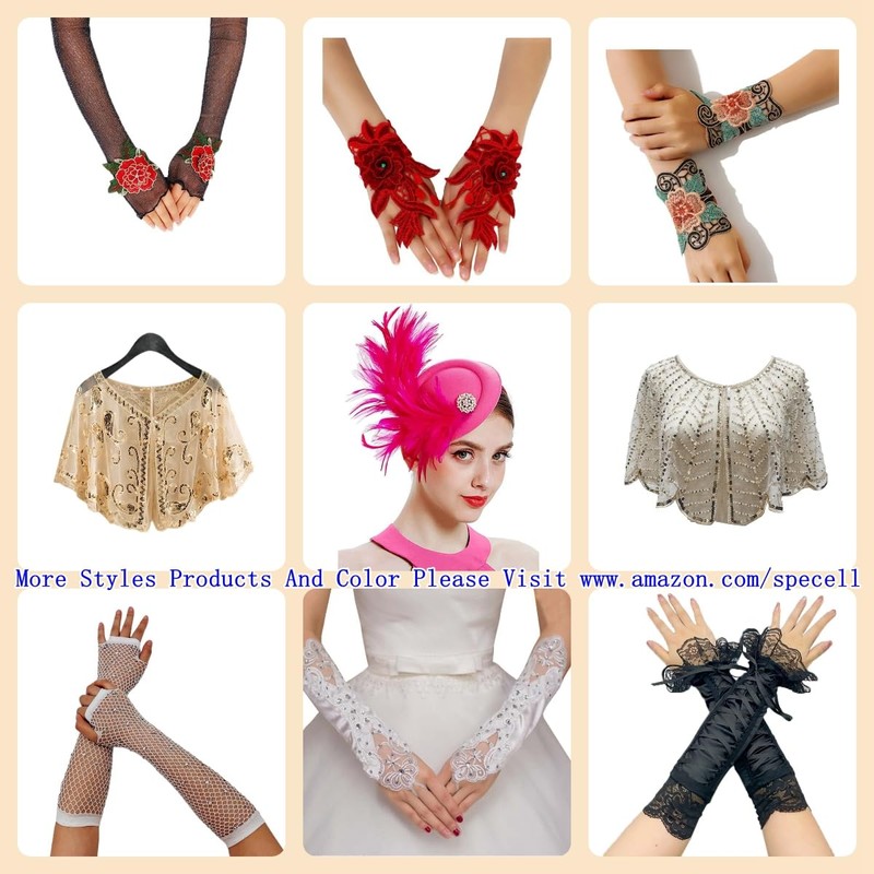 - 【Champagne Lace Gloves Women Occasions】 This Long Lace Fingerless Gloves For Women Can Easily Match A Variety Of Flapper Costume Accessories, Headpiece/Headband, Necklace, Gown, The Great Gatsby Accessories, Roaring 20s Accessories, Halloween, Can Be Paired With Any Themed Costumes.