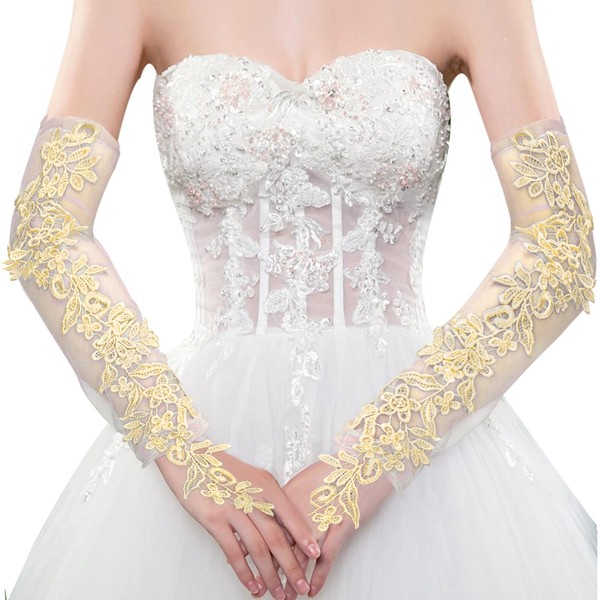 - 【Champagne Fingerless Gloves For Women】Fingerless Gloves With Come In Classic Colors, Total Length: Approx 50 Cm/19.68 Inches, Bridal Wedding Lace Gloves, With Fingerless Design. Suitable For All Women, Easy To Adjust And Wear, Lace Glove Are Made Of Premium Tulle Flowers Pattern , Light In Weight, Super Soft And Breathe, Looks More Charming And Elegant. Be Easily Matched With Different Outfits, Such As Wedding Dresses, Banquet Dresses, Party Dresses, Etc.