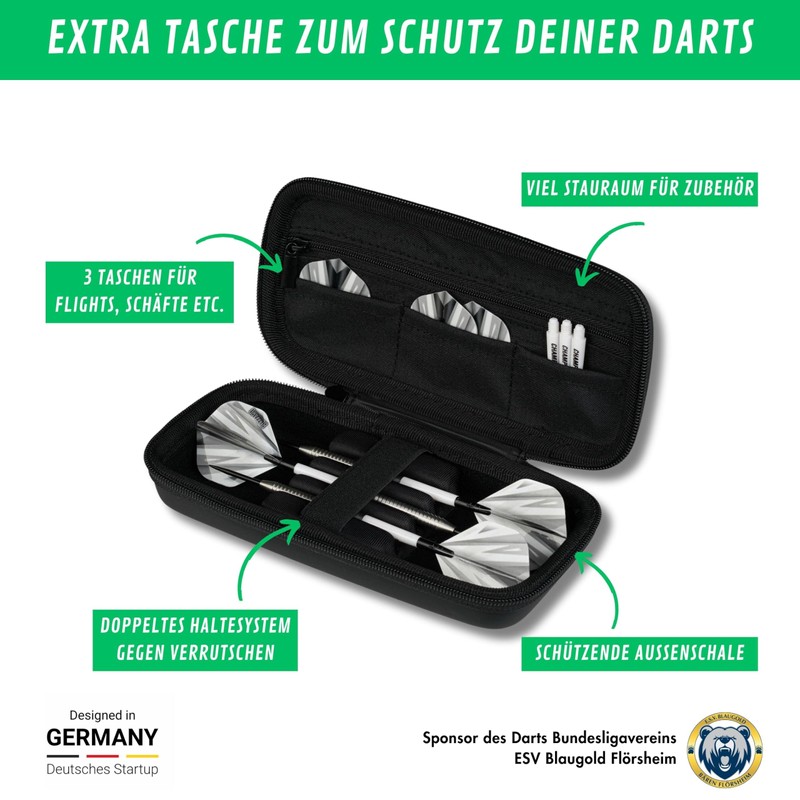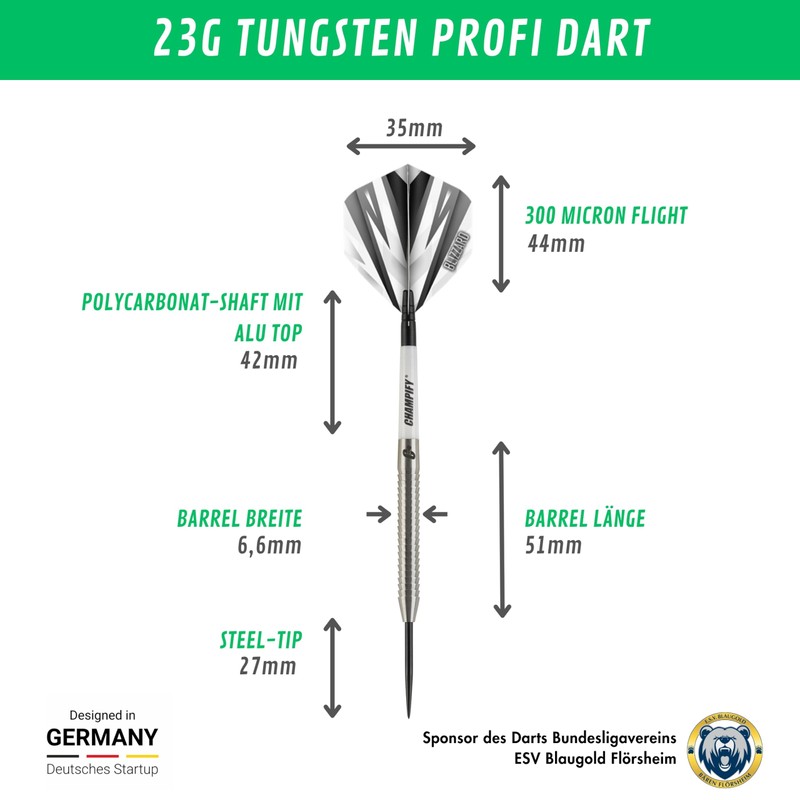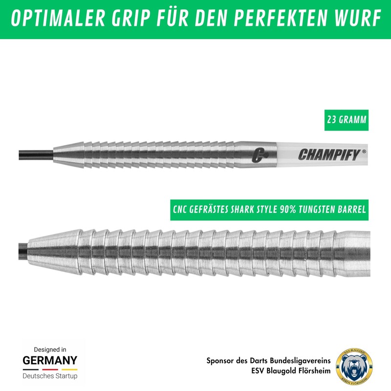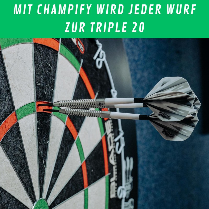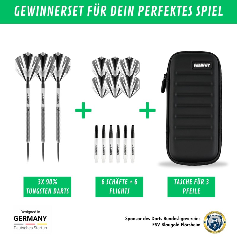 - Complete set with high-quality dart case: the Champify Blizzard set includes everything you need for your darts game. In addition to three complete 23 g 90% tungsten darts, we also supply 6 other replacement shafts and flights, as well as our popular black dart case for 3 darts.