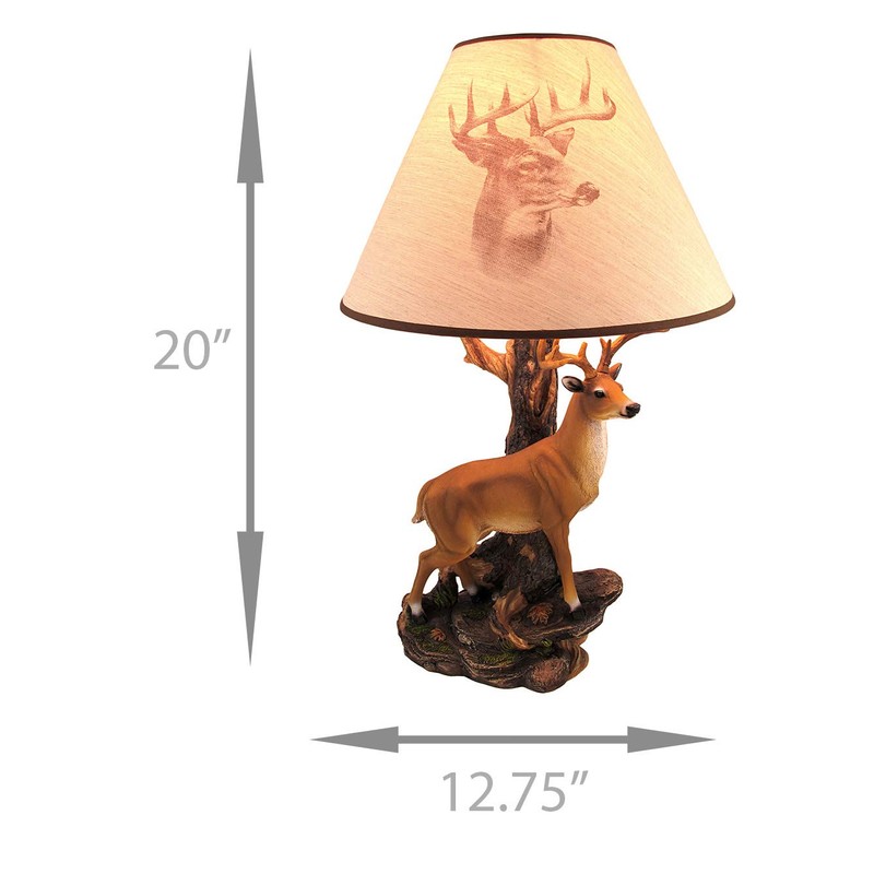 `Champion` 12 Point Buck Table Lamp with Deer Printed Shade