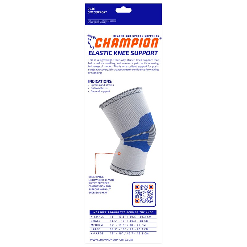 The Champion 0436 is a lightweight four-way stretch knee support that helps reduce swelling and minimize pain while allowing full range of motion. This is an excellent support for post-surgical recovery. It increases wearer confidence for walking or standing.