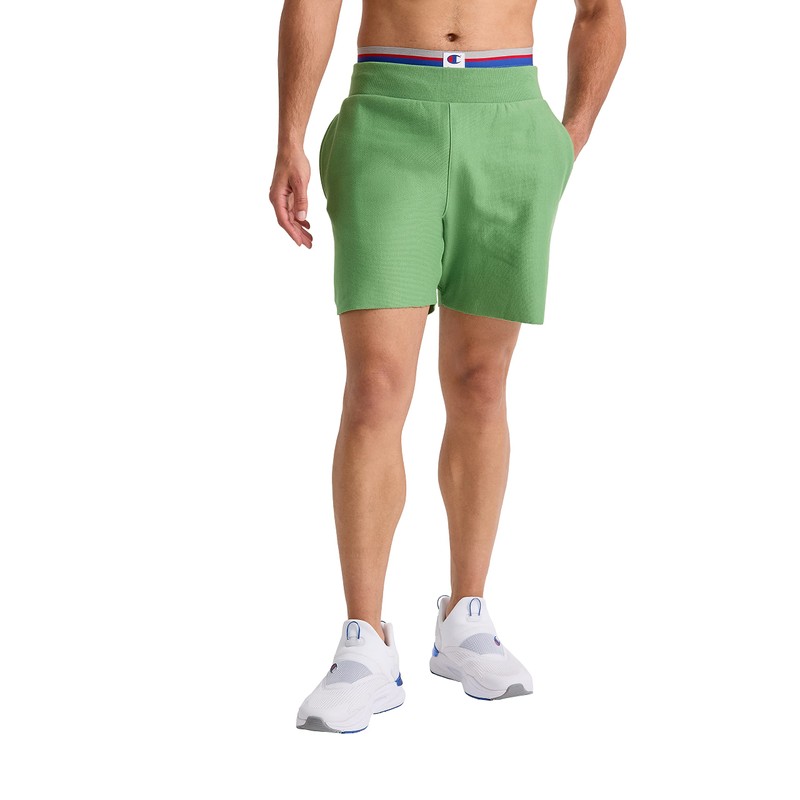 Champion Men's Reverse Weave Cut, Raw Hem Fleece Shorts, 7", Native Fern Green C Patch Logo, Medium