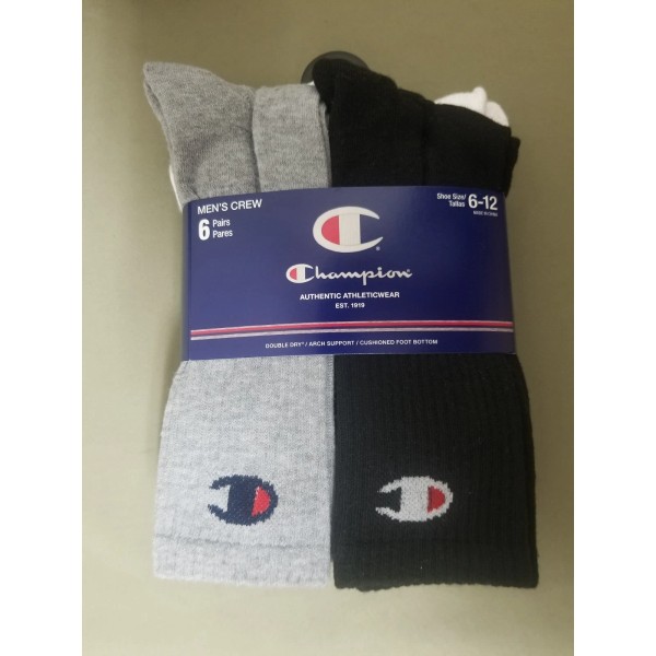 Champion New Champion Mens 6 Pair Multi Color Athletic Crew Socks.