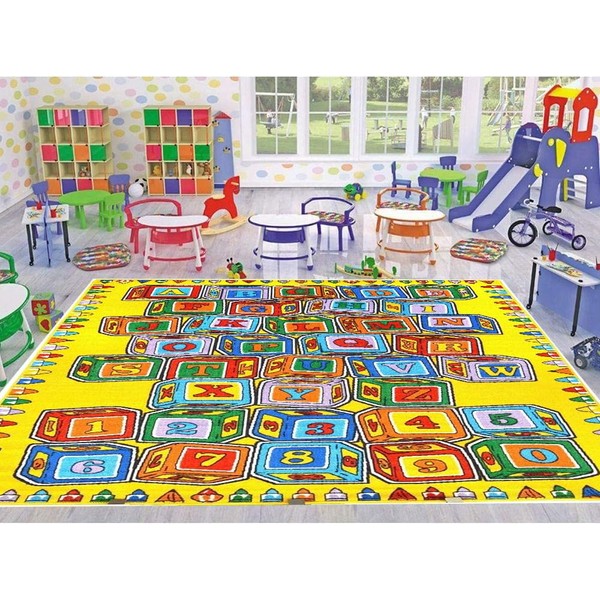 champion rugs Kids/Baby Room/Daycare/Classroom/Playroom Sit Spot Area Rug Abc's Alphabet Letters Numbers Blocks Play Mat Fun Educational Non-Slip Gel Back Bright Colorful Colors (5’ X 8’)