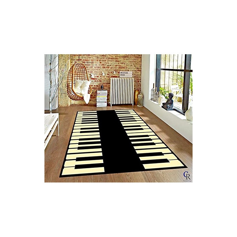 Champion Rugs Music Theme Area Rug Music Instruments Note Piano Keyboard Area Rug Mat for Living Dining Dorm Room Bedroom Home Decor (5’ 3” X 7’ 3”)