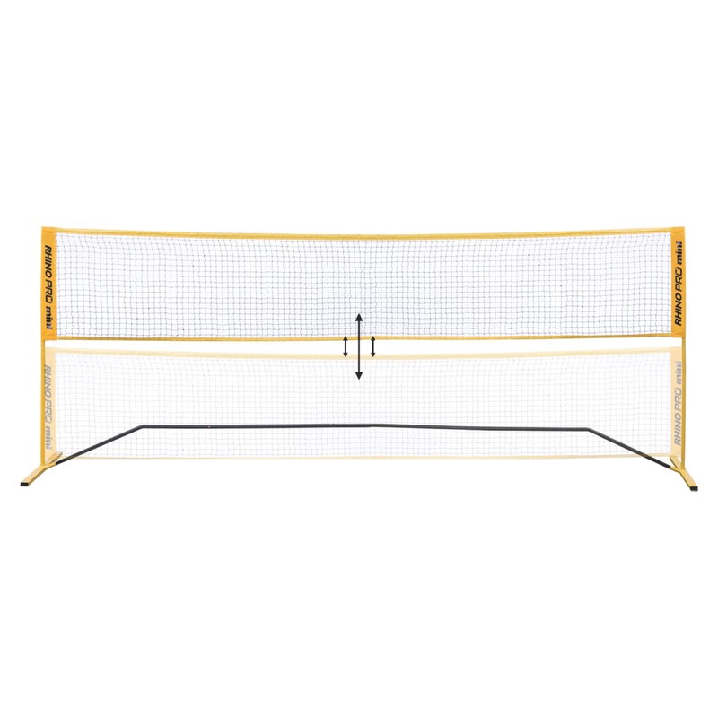 - POP UP RACKET SPORT & GAME COURT NET: At 10' wide by 63" high in raised position, 33" at low, this easy to assemble nylon rope net provides the ideal tension and height for multiple racquet sports, even in high winds.