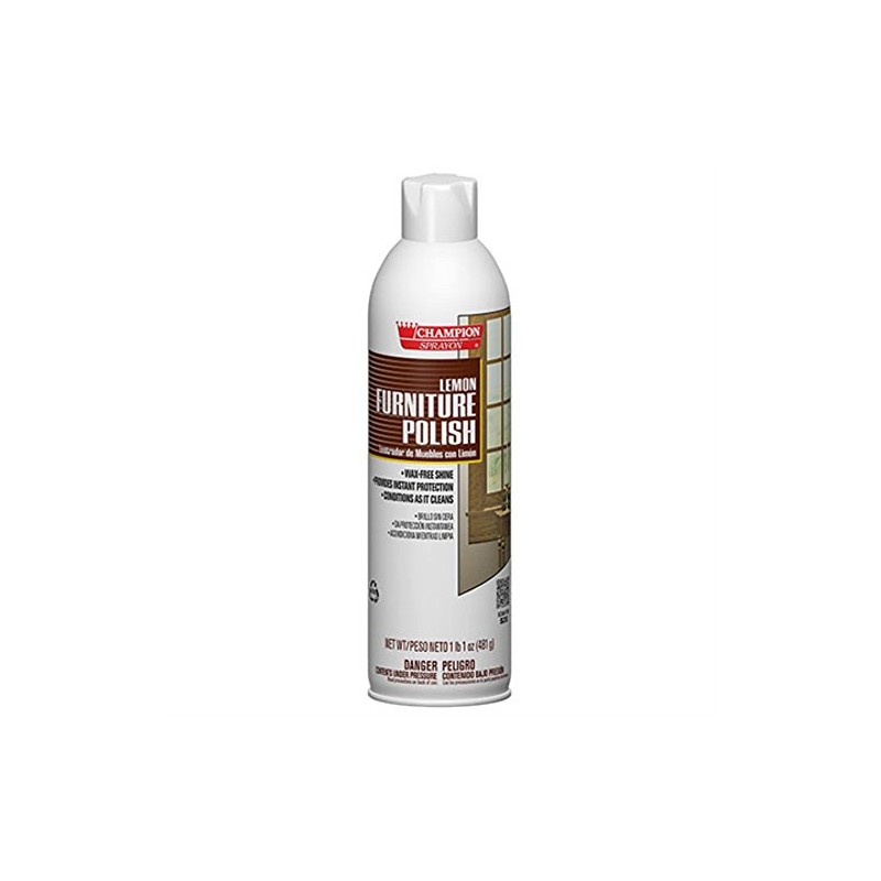 Clean, polish and condition wood surfaces all at once. Smooth, scented formula provides a brilliant wax-free shine. Highly effective product helps restore neglected wood surfaces. Application: Woodwork; Applicable Material: Wood; Dirt Types: Dirt; Dust; Fingerprints; Smudges; Scent: Lemon. Chase Products Champion Sprayon Furniture Polish, Lemon, 17oz, Aerosol, 12/Carton