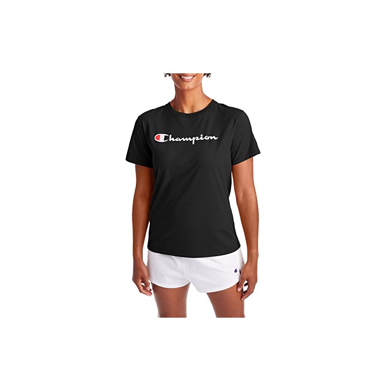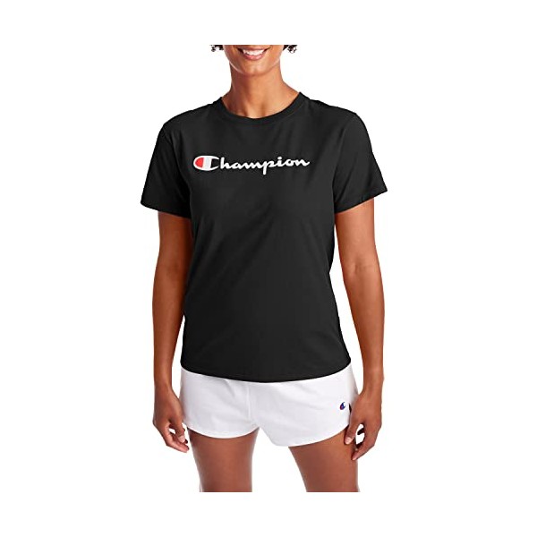 Champion womens Classic Tee, Script Logo T Shirt, Black-y08113, Large US
