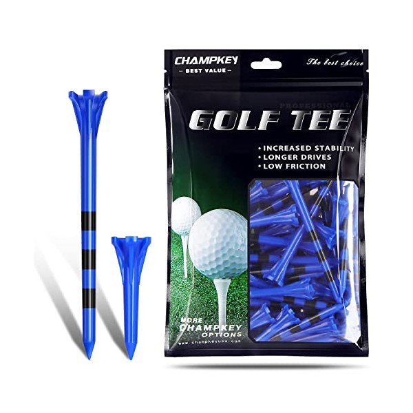CHAMPKEY Original Plastic Golf Tees 100 Pack | 85 Driver Tees with 15 Iron/Hybrid Tees Mixed Pack | Low Friction and Resistance Golf Plastic Tees