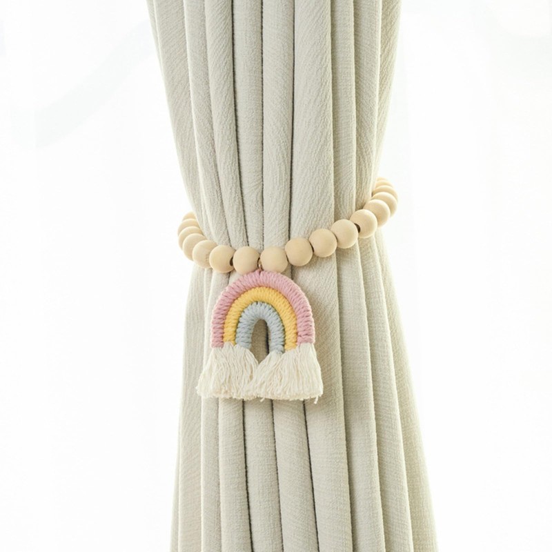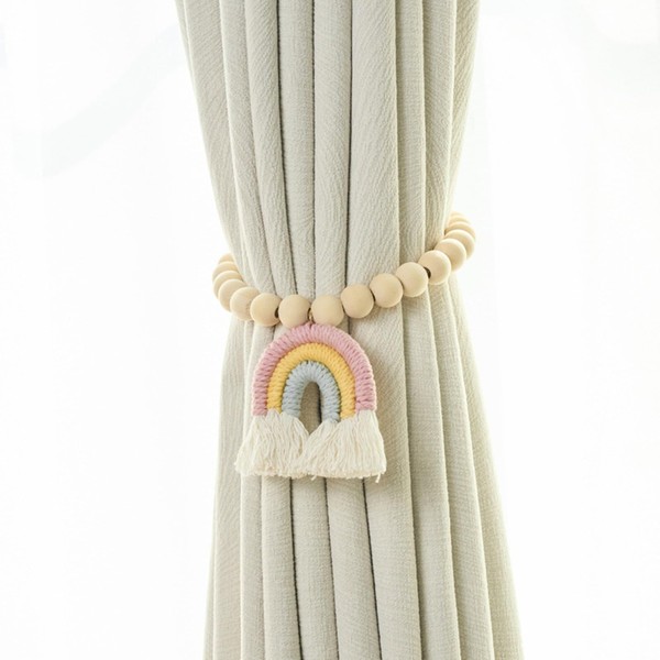 champracer Magnetic Curtain Tiebacks, Rainbow Boho Curtain Holders, Pack of 2 Rainbow Tassels Curtain Holders with Wooden Bead, Curtain Tiebacks Magnetic (Rainbow Pink)