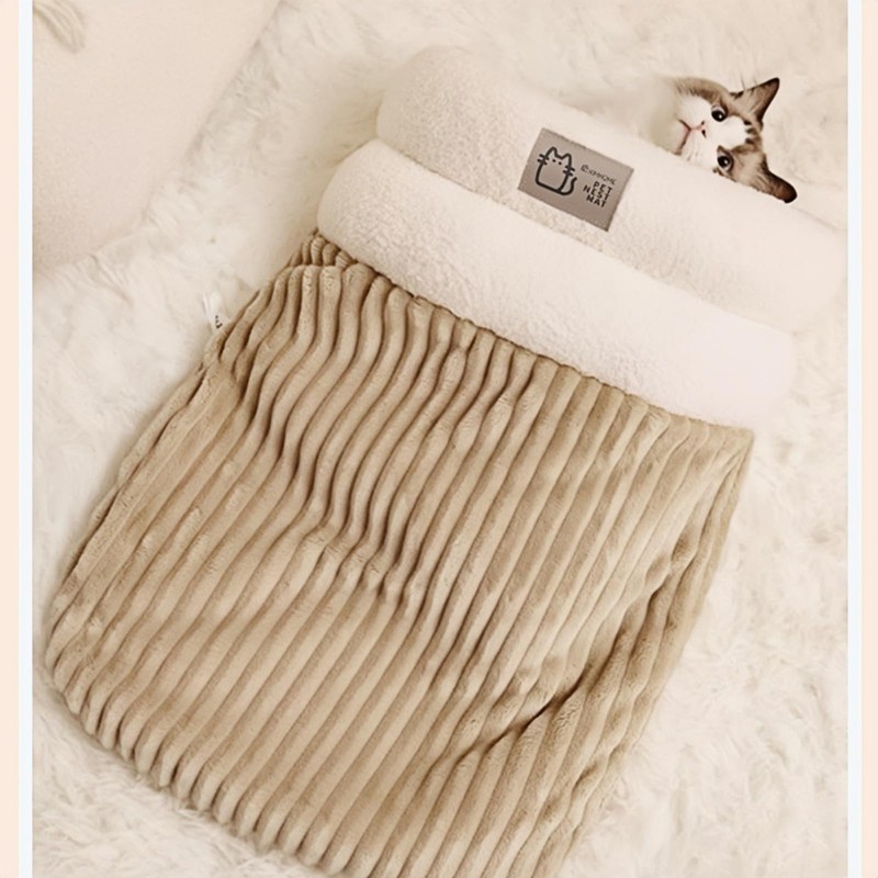 - Comfortable and warm: made of high-quality coral fleece material, it feels soft and comfortable, the semi-closed design of the cat sleeping bag provides all-round warmth and comfort for cats, especially in cold seasons, it can maintain body temperature, so that cats can feel warm in winter.
