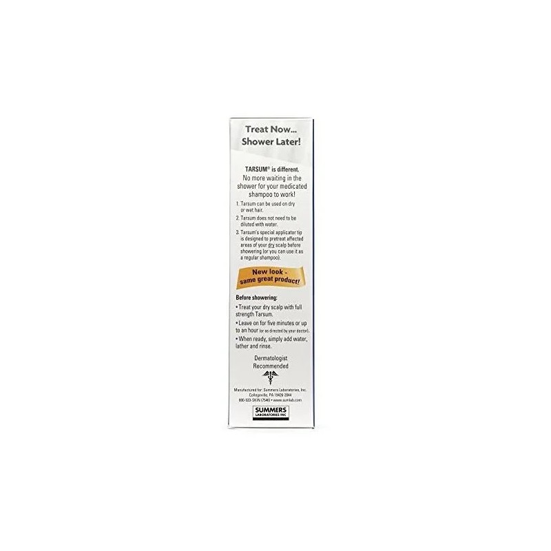 Summers Laboratories: Champú Tarsum Relief, champú y gel acondicionador de alquitrán de hulla (botella de 4 onzas) ¡Conseguir el cuero cabelludo suave, limpio y sin escamas con el que ha soñado es más fácil que nunca con Tarsum! Tarsum es un gel seco sin enjuague (para antes de la ducha) que está hecho para adaptarse a tu estilo de vida. Ya no tendrás que quedarte de pie en la ducha con el cabello mojado, como ocurre con otros champús de alquitrán de hulla. Tarsum te permite personalizar el nivel de acción para el que está preparado tu cuero cabelludo. Déjalo actuar durante 5 minutos y lávalo o, si es necesario, puedes aumentar el tiempo de acción hasta una hora. La mejor parte es que puedes usarlo en el cabello seco, puedes continuar con tu día mientras Tarsum hace su trabajo. Mejor para tu cuero cabelludo, mejor para tu vida. Formulado para ser más efectivo, el tarso se activa tan pronto como entra en contacto con el cuero cabelludo. Usamos beta hidroxiácido para ayudar a exfoliar la piel muerta, escamosa y la placa, mientras que la solución a base de alquitrán de hulla LCD (destilado de licor de carbono) ayuda a aliviar la picazón, el enrojecimiento y la inflamación. El tarso está hecho para ayudar a curar y mejorar a largo plazo, así como para tratar los síntomas causados por la psoriasis, la dermatitis seborreica, el eccema y la caspa grave. El champú Tarsum Relief Designed for Real Support está fabricado por Summers Laboratories. Nuestro objetivo es hacer que las soluciones sean más fáciles de usar y que se centren en algo más que en el alivio a corto plazo. Fabricamos productos que le brindan el alivio inmediato que necesita, pero también ayudan a lograr un bienestar curativo a largo plazo. Creamos productos únicos para tratar una amplia gama de problemas de la piel. Nuestro objetivo es crear más que lociones, cremas, champús, acondicionadores y geles. Creamos tranquilidad. - LO MEJOR PARA EL CUERO CABELLUDO: El tarso es un champú y acondicionador sin alquitrán de hulla que calma la piel del cuero cabelludo, exfolia la piel escamosa y la placa, y retiene la humedad para ayudar a mejorar la salud de la piel. Consiga un champú para reducir la irritación, el enrojecimiento y la inflamación con Tarsum. - ALIVIO PARA SU VIDA: cuando aplique Tarsum antes de la ducha, puede dejarlo seco entre 5 minutos y 1 hora para obtener el nivel de acción adecuado para usted. Tarsum es un champú y acondicionador que actúa más cuanto más tiempo lo dejas puesto. - CHAMPÚ CURATIVO Y CALMANTE: Tarsum está especialmente formulado para ayudar a curar y mejorar la picazón, la sequedad, el cuero cabelludo y la inflamación, el enrojecimiento, la piel escamosa y la placa causadas por la psoriasis, la dermatitis seborreica, la caspa grave y el eccema. Tarsum ofrece el mejor alivio con un gel que promueve la cicatrización con el tiempo. - MÁS EFICAZ: Tarsum utiliza beta hidroxiácido con un 10% de LCD (destilado de licor de carbono) una solución a base de alquitrán de hulla para ayudar a cuidar el exceso de células muertas de la piel y tomar medidas en la fuente para que la piel del cuero cabelludo tenga la oportunidad de sanar. - LABORATORIOS DE VERANO: Nos dedicamos tiempo y cuidado a crear soluciones que sean más que eficaces a corto plazo, creamos lociones, cremas, pomadas, champús, acondicionadores y geles que brindan apoyo a la piel, el cuero cabelludo y el cabello a largo plazo y lo ayudan vive una vida mejor y más cómoda.