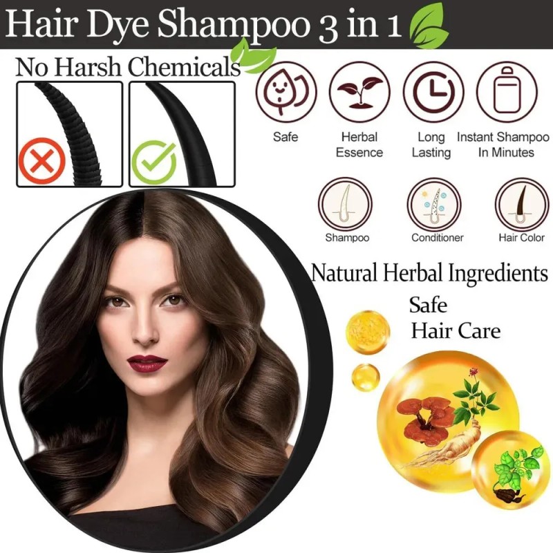 Champú Para Teñir El Cabello 3 En 1, Ingredientes Herbales,