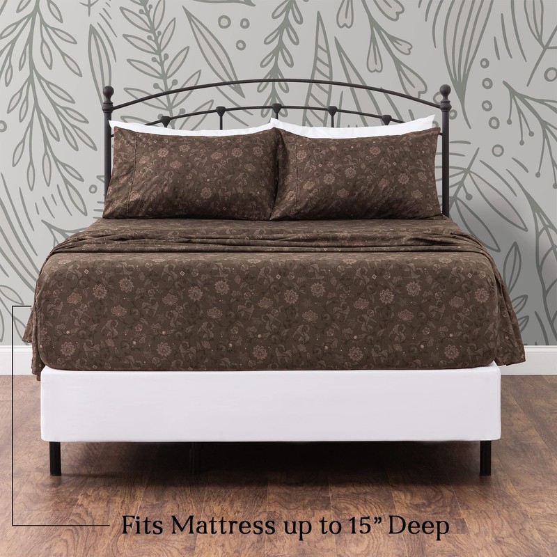 Chanasya Premium Floral Printed Elegant Patterned Twin Bed Sheet Set 3-Piece - 1 Flat Sheet 1 Fitted Sheet and 1 Pillowcase - Ultra Soft Microfiber Hypoallergenic Sheets - Brown