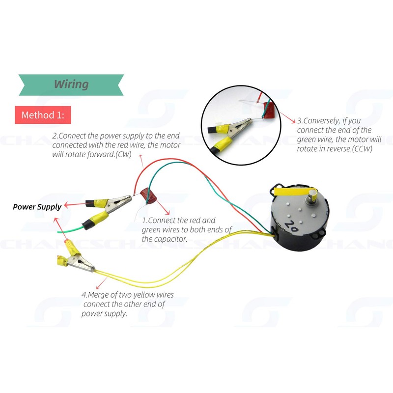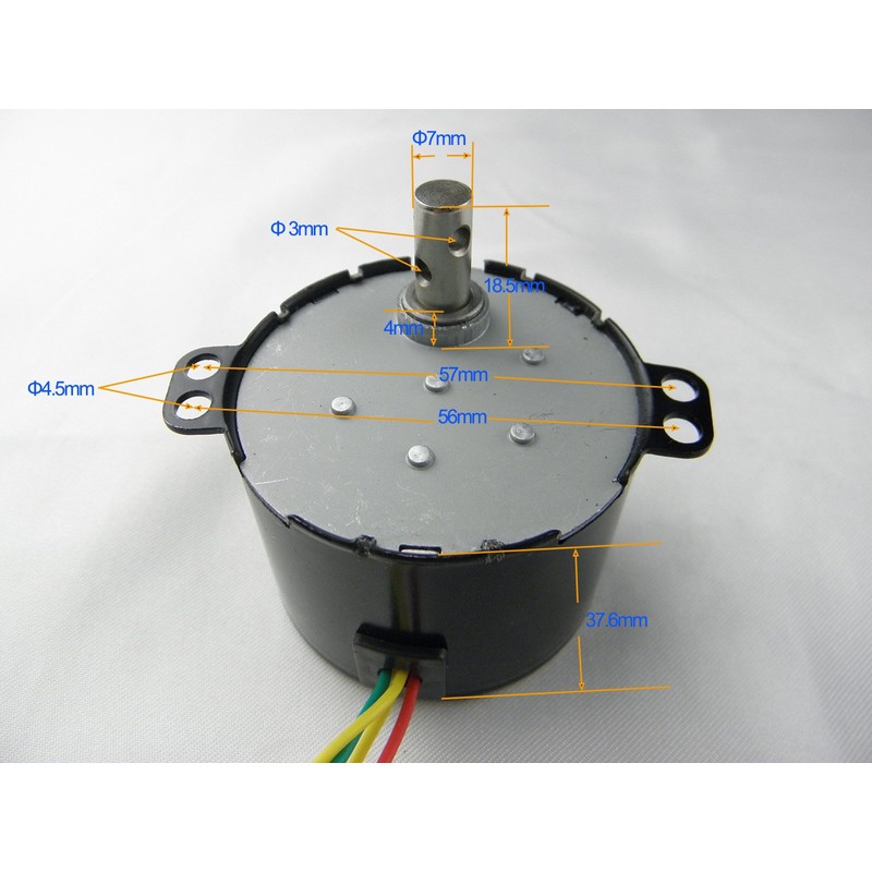 - 【Specification:】 Shaft Diameter: 7mm ; Shaft Length: 14.5mm ; Working Voltage: AC 220V ; Speed: 100RPM ; Frequency: ~50/60Hz ; Power: 6W ; Capacitor: 0.56uF ; Tourque: ≤0.7Kgf.cm; Rotation: CW/CCW (controllable);