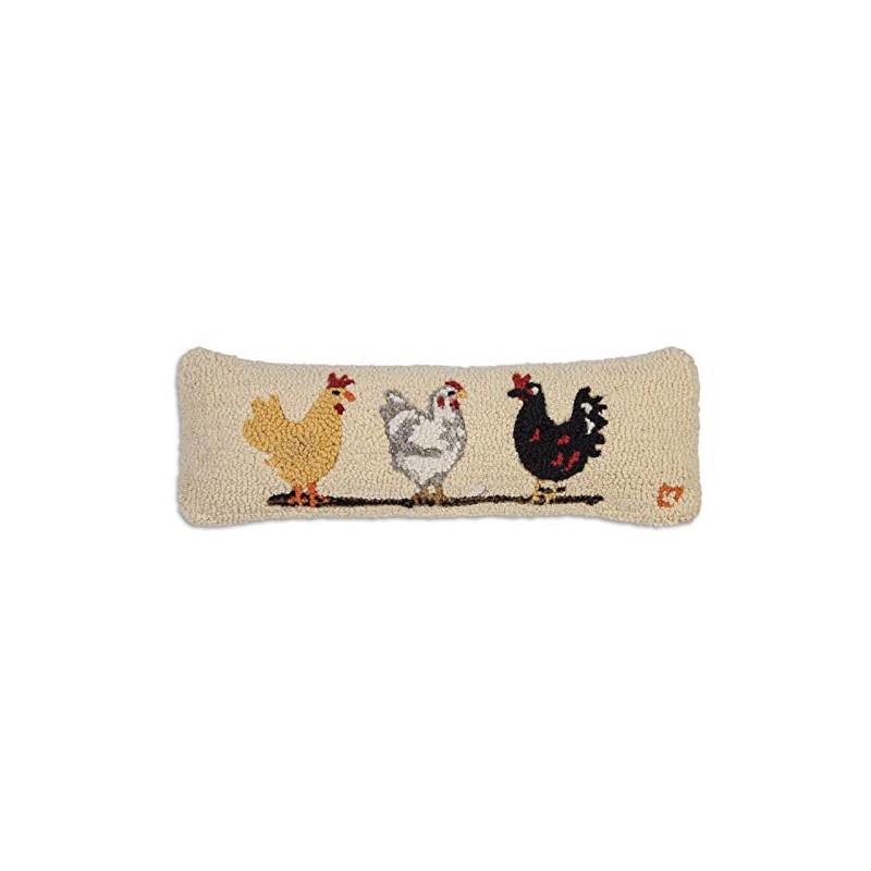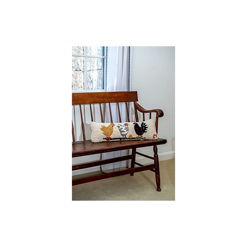 - HANDCRAFTED QUALITY: Our natural wool 8x24 Three Hens pillow is hand hooked by skilled artisans who create long-lasting decorative pillows that are perfect on any bed, couch or rocking chair.