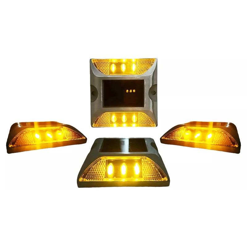 Contractor Choice. Heavy Duty, Commercial and Industrial Grade.. Illuminate your driveway with Solar Driveway Ultra Bright Lights, designed for optimal visibility and safety. These wireless, solar-powered lights are not only eco-friendly but also waterproof, ensuring durability in outdoor conditions. The deck lights feature a total of 6 LEDs, with 3 on each side, casting a vibrant yellow glow that enhances both aesthetics and warning signals. Ideal for pathways and driveways, these metal-ground lights provide a stylish and practical solution. Invest in the future of outdoor lighting with this Pack of 2 Solar Driveway Lights, combining functionality, energy efficiency, and a touch of sophistication to elevate your outdoor space. Worth it's money. Buy with confidence.