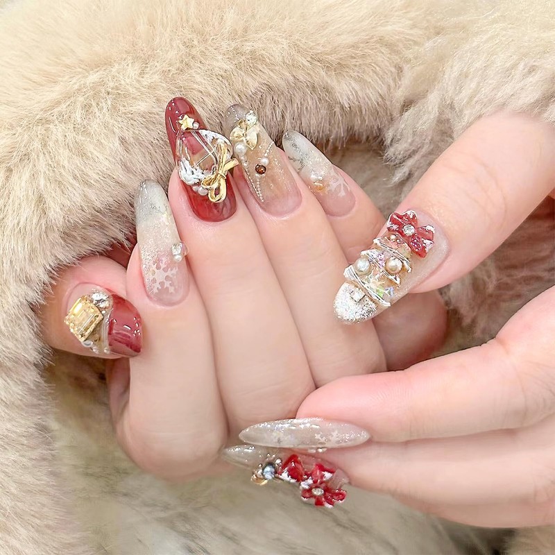 - 【Einfach zu verwenden】 Sie müssen nur die Oberfläche Ihrer Nägel reinigen, einen Grundanstrich auftragen und aushärten und Ihre Lieblingsanhänger mit Nagelkleber auf Ihre Nägel kleben, um ein Ablösen zu verhindern, und schon haben Sie eine glänzende Nagelkunst, und Sie können diese Schleifenanhänger auch mit anderen Nagelaccessoires verwenden.