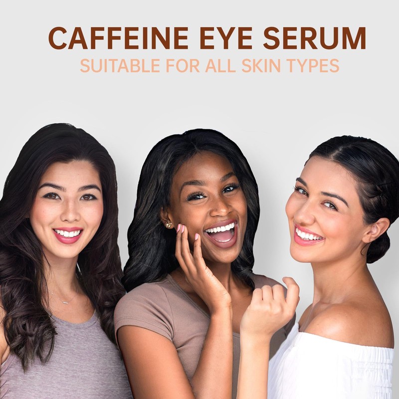 - Gentle Eye Serum: Our caffeine eye cream serum suitable for all skin types and doesnt leave a sticky residue. The caffeine eye serum contains no chemical additives, no burning sensation on the skin, does not damage the skin tissue, and can be used with other moisturizers and serums for better effect.