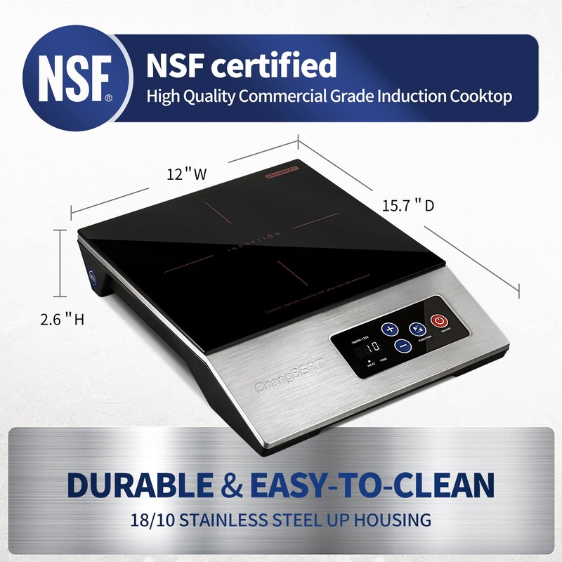 CHANGBERT ChangBERT 1800W Commercial Grade Induction Cooktop, NSF Certified Portable Large 8 Heating Coil, 12" Heat Resistant Cooking Surface 18/10 Stainless Steel Power Pro Chef Professional Burner Hot Plate