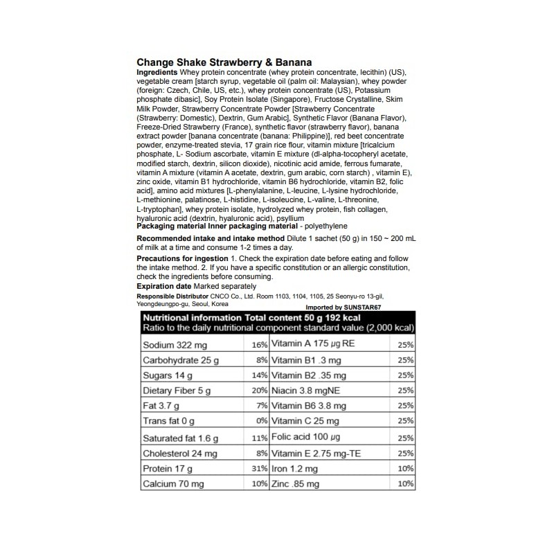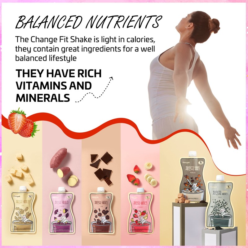 Change Fit Shake [체인지핏], On-The-Go Protein Shake Pouch and Meal Replacement, Rich in Vitamins and Minerals, and Delicious Flavors, Made In Korea - 50g/Pouch (5 Pack of Strawberry & Banana)