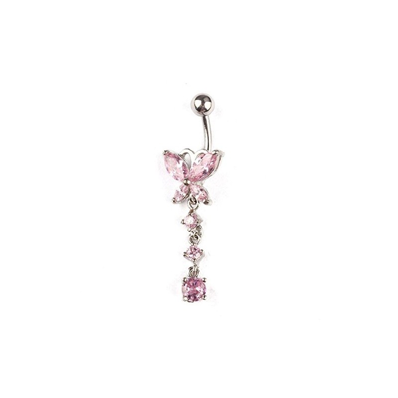Changeshopping(TM) Crystal Butterfly Dangle Ball Barbell Bar Belly Button Navel Ring (Pink)