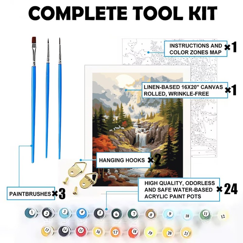 - What Will You Get: Paint by numbers kit including 1 piece of linen canvas measuring 16x20inch(40x50cm), 1 set of acrylic paint, 1 colored postcard guide, and 3 nylon brushes of different sizes. Acrylic coatings are easy to color and prevent fading, Canvas is made of linen has good water absorption and breathability, making it easy to store for a long time.