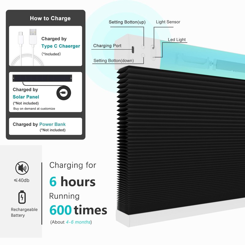 • What You Get: Smart Cellular blinds dual layer fabric motorized with remote control, mounting brackets hardware both inside and outside mount available, directions and one-year warranty by Changshade. Any questions please feel free to contact us, your satisfaction is our top priority.