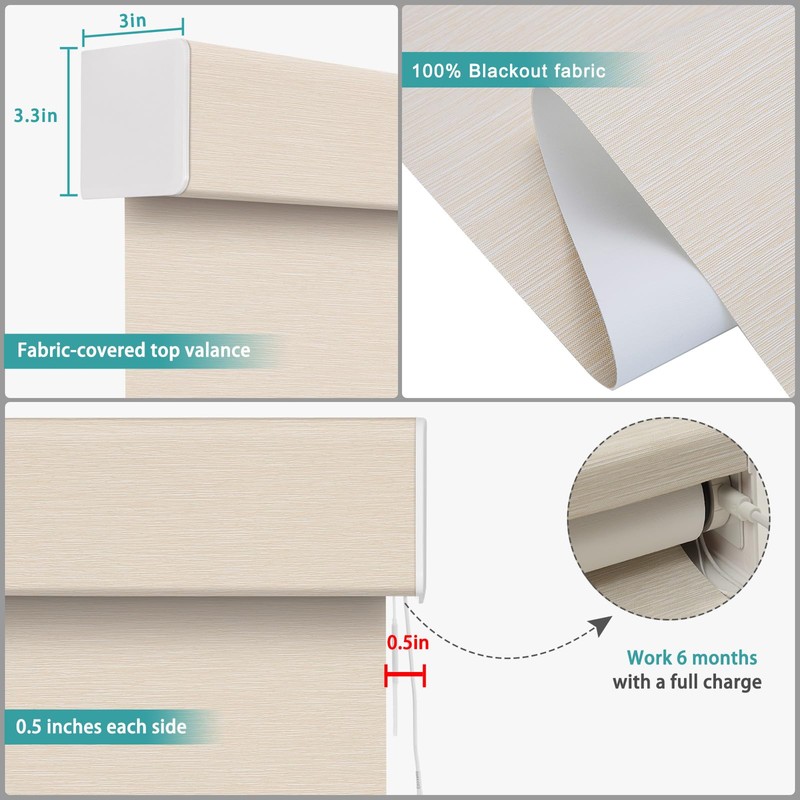 • Material and Mount: The durable textured fabric shade can provide heat insulation and noise cancelling. Electric blinds are a safe choice for homes with children and pets. It's easy to clean, as you can wipe the dust easily with a dry cloth. Brackets, hardware, mounting video, and instructions are provided for quick and easy installation.