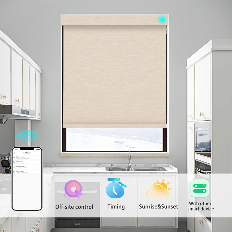 Changshade Smart Roller Shade with Remote Control Blackout Automatic Window Shades for Home Custom Size Motorized Blinds for Windows Compatible with Alexa,Google Home,Apple Homekit, Beige