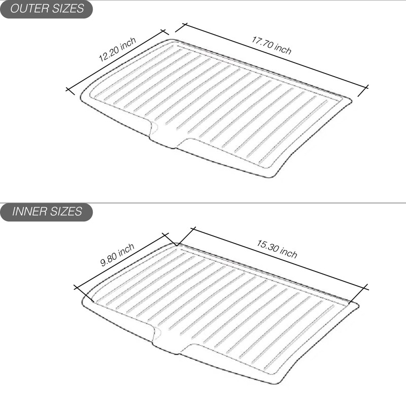 - ✔️PAY ATTENTION! If you want to use the drain board with your dish drying rack, you will need to measure the dimensions of your dish drying rack and compare them with the inner sizes of the draining board. The inner sizes are 15.30 x 9.80 inches.