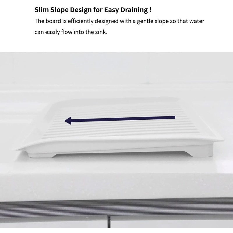 - ✔️FREE UP YOUR KITCHEN SPACE: The draining board is designed as light weight and easy to move. You can always easily place the draining board next to the sink when you need to dry plates, cups, fruits and vegetables and also effortlessly remove the draining board when you need that space for cooking or other kitchen activities.