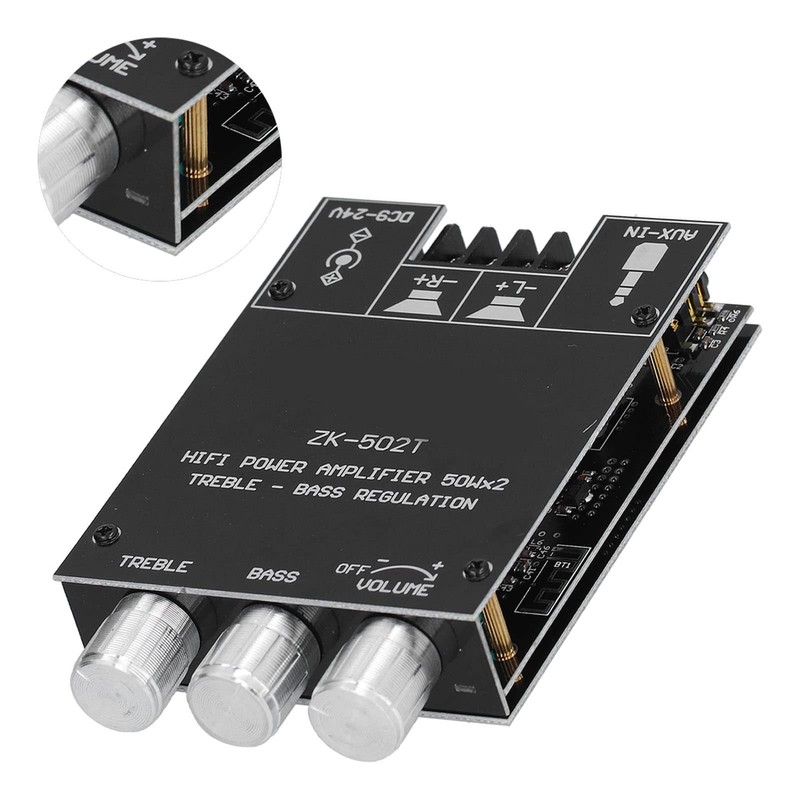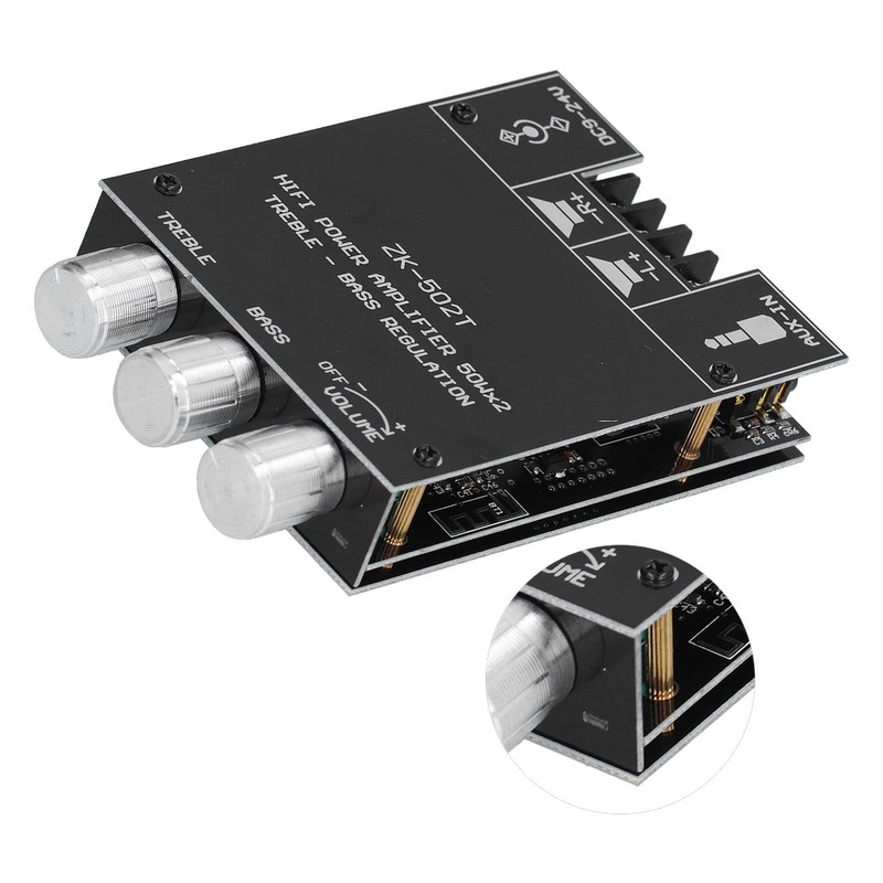 Channel Power Amplifier Zk-502t, Module Stereo AMP Board with Treble Bass Control ZK‑502T