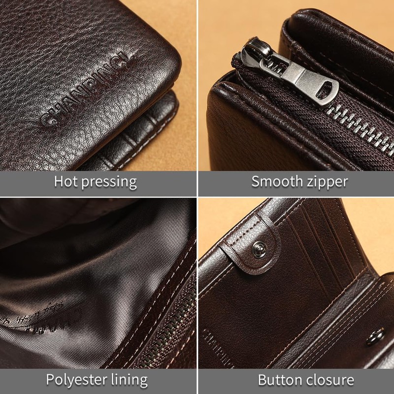 - Materials: Classic practical style,The surface of the wallet are made Italian imported high-quality cowhide oil wax leather. Handmade by professional designers,The lining was made of polyester.multifunctional and large capacity design, with superior materials, durable. Dedicated logo button, showcasing nobility.
