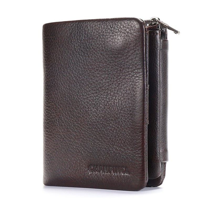 CHANPINCL Men's Buckle zipper genuine leather wallet, large capacity 13card slots, Driver's license, multifunctional coin pocket (Coffee)
