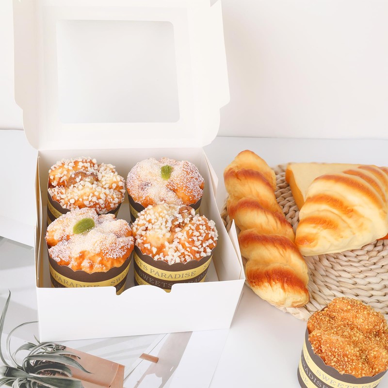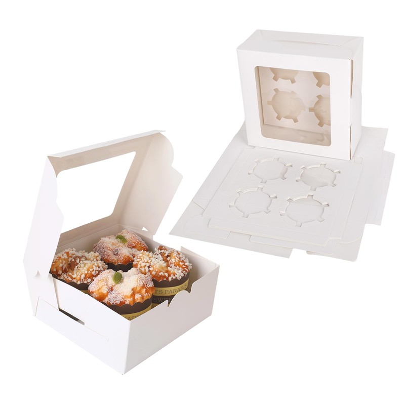 Whether you're a professional baker or home baker sharing your love, our 4 cupcake box combine visual charm with reliable protection!Specifications:Quantity: 20 pcs per packSize: 6.3" x 6.3" x 3"Material: White cardstockIncludes: Built-in inserts for 4 cupcakes eachWindow: Transparent clear top for easy viewingPerfect for:Ideal for bakeries, party planners, or home bakers looking for elegant cupcake packaging options. These boxes work beautifully for birthdays, weddings, baby showers, holiday gifts, or everyday bakery sales.Whether you're selling at a farmers' market or gifting to friends, our disposable cake containers make packaging easy, professional, and secure. These are not just cupcake container, they also double as charming dessert box options for cookies, muffins, cake pops, and more. Add ribbons or stickers for a personal touch.A reliable choice for those seeking stylish cake pop box solutions or practical cupcake boxes bulk for large-scale events. Make every cupcake delivery special with our beautifully crafted cup cake boxes set.