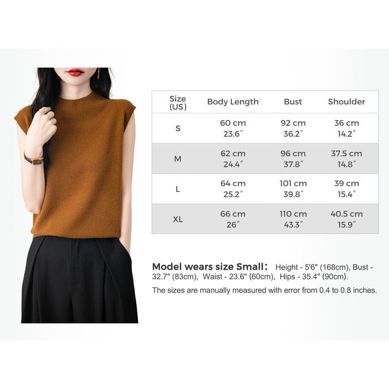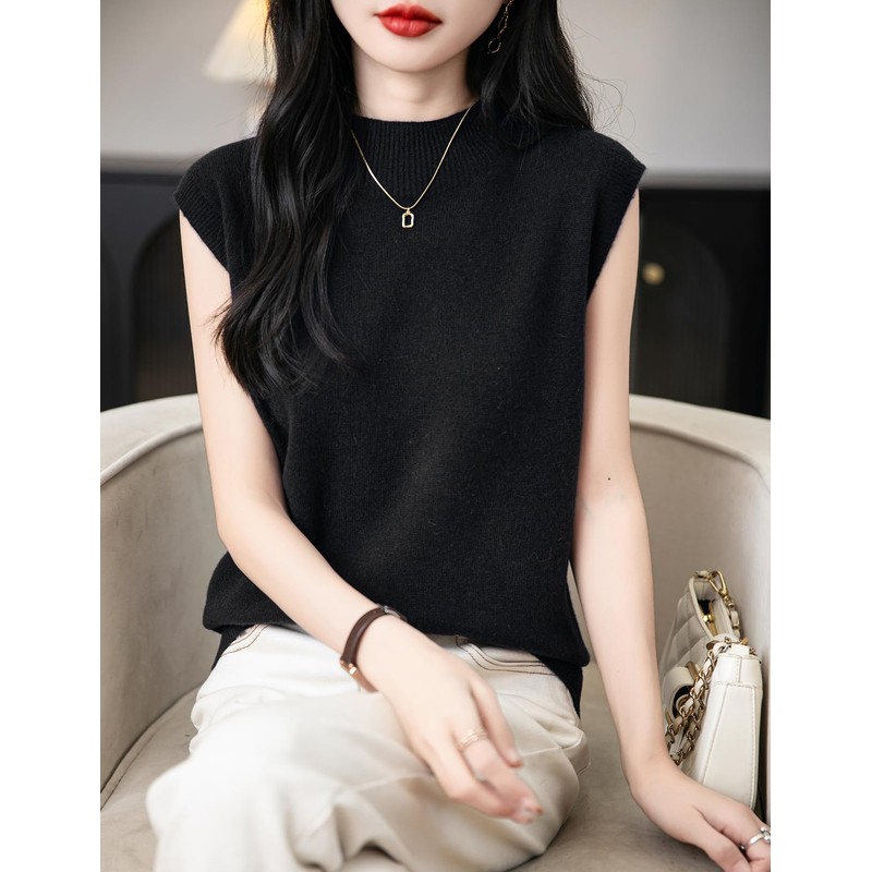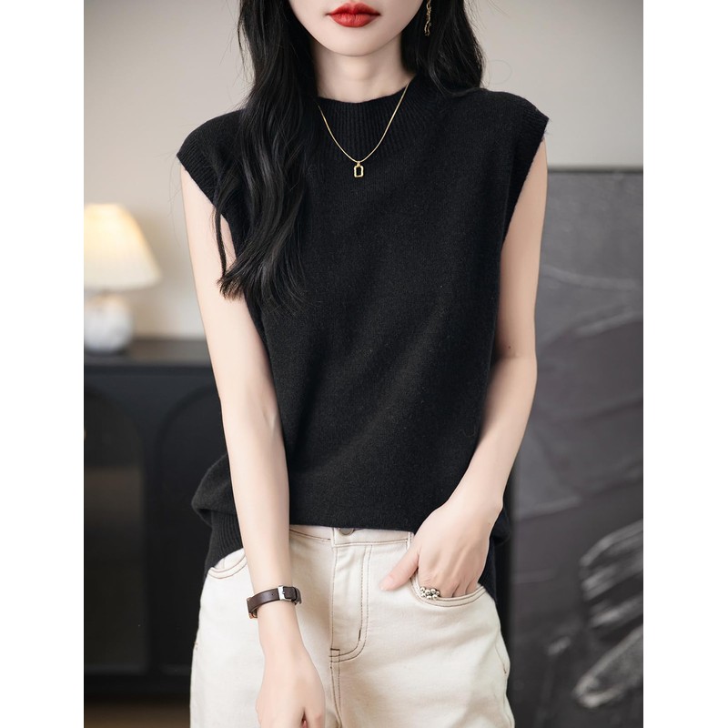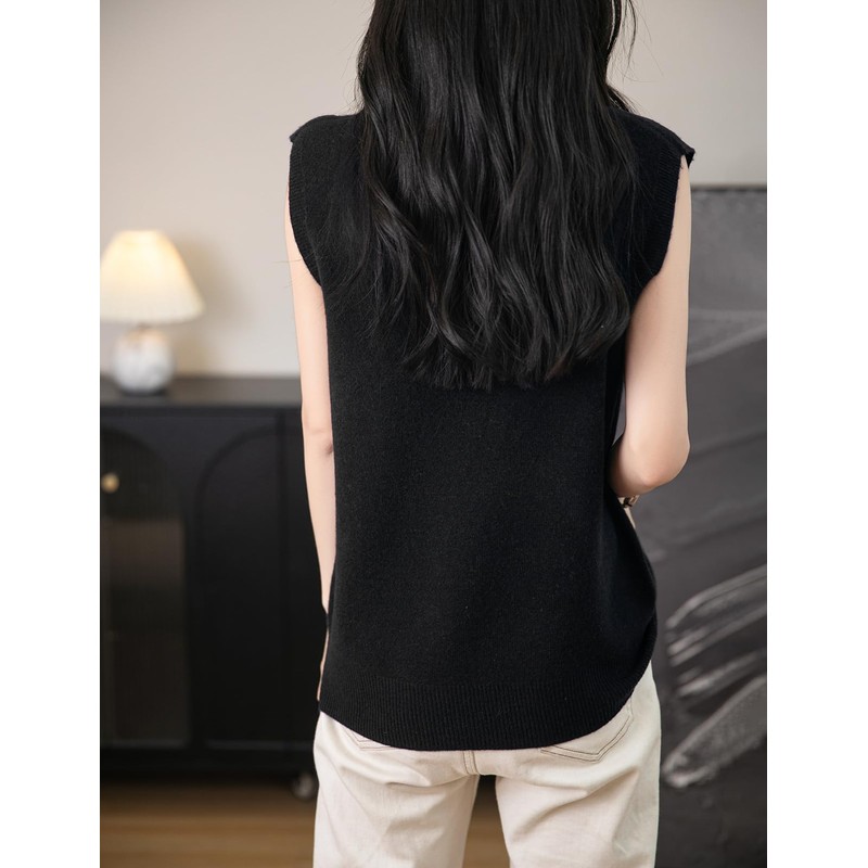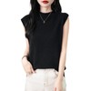 Chanyarn Women's 100% Merino Wool Pullover Spring Autumn Winter First-Line Ready to Wear Turtleneck Seamless Knitted Sleeveless Sweater Vest, black, M