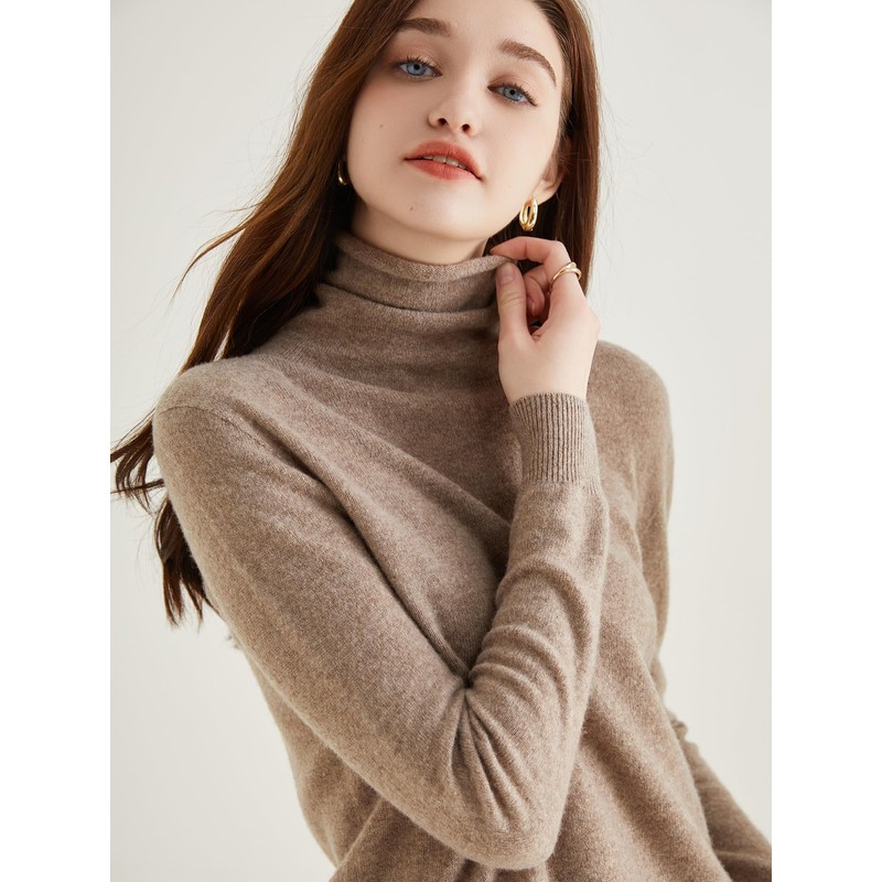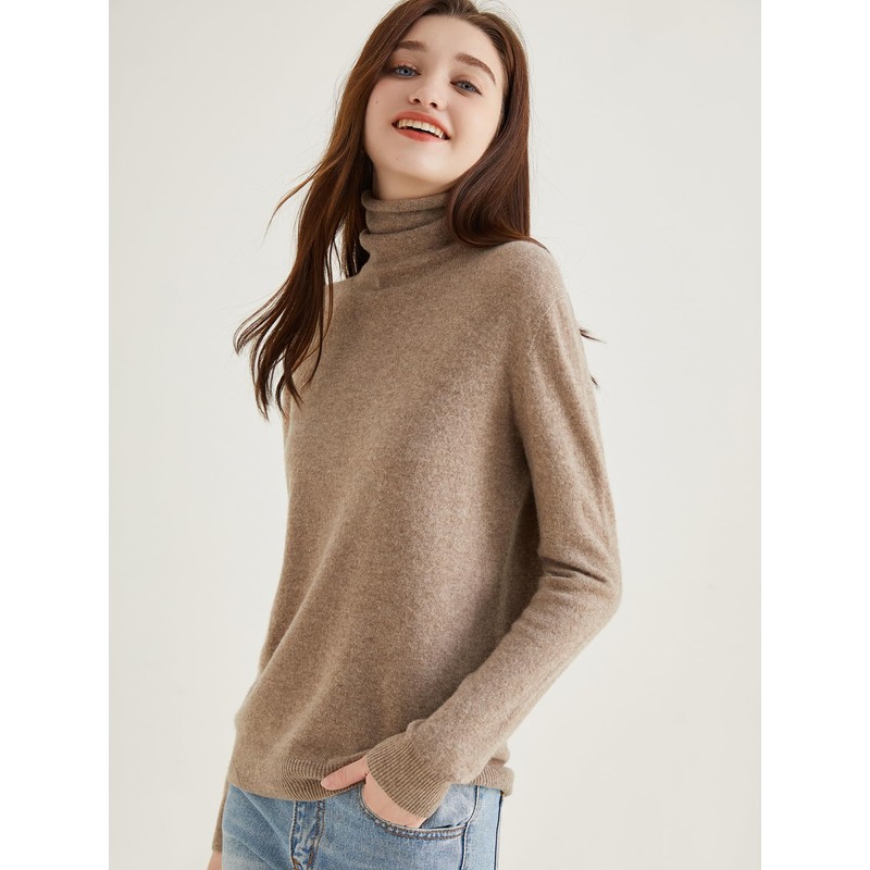 Chanyarn Women's Turtleneck Pullover 100% Merino Wool Autumn Winter Basic Warm Soft Long Sleeve Seamless Knitted Jumper, tan
